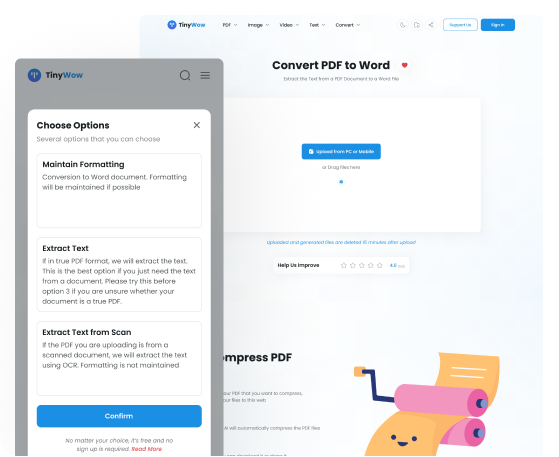 TinyWow is 100% free to use (even OCR), with no pesky registration required. For our most loyal supporters, a $5.99/month plan unlocks an ad and captcha free experience.